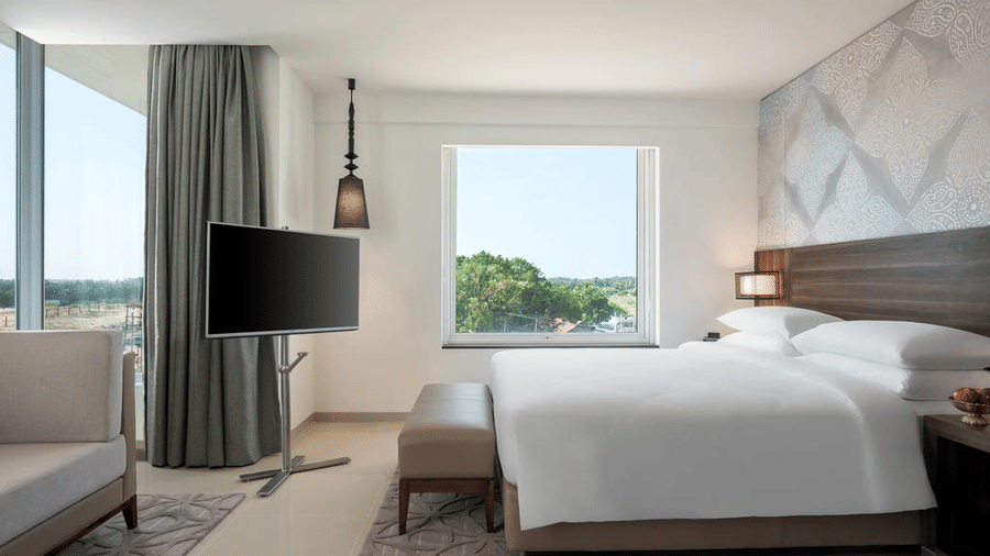 Our spacious 301 sq. ft. Standard King Rooms in Rameswaram are designed for comfort and luxury. Each room features a plush Eurotop mattress, swivelling HD TV, individually controlled air-conditioning, a mini-fridge, charging station, iron with ironing board, and an electric kettle for added convenience. Indulge in premium bath amenities during your stay. With every essential thoughtfully provided, these rooms offer a relaxing and enjoyable experience, making your stay in Rameswaram truly memorable. You can choose between a garden-view or pool-view room.